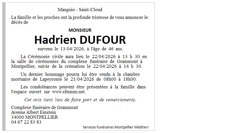 Complexe funéraire de Grammont le mercredi 22 avril à 14 heures 30