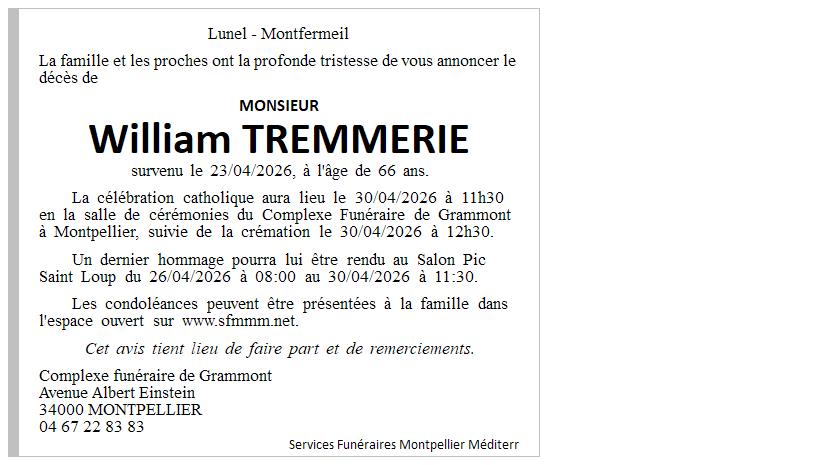 Complexe funéraire de Grammont le jeudi 30 avril à 12 heures 30