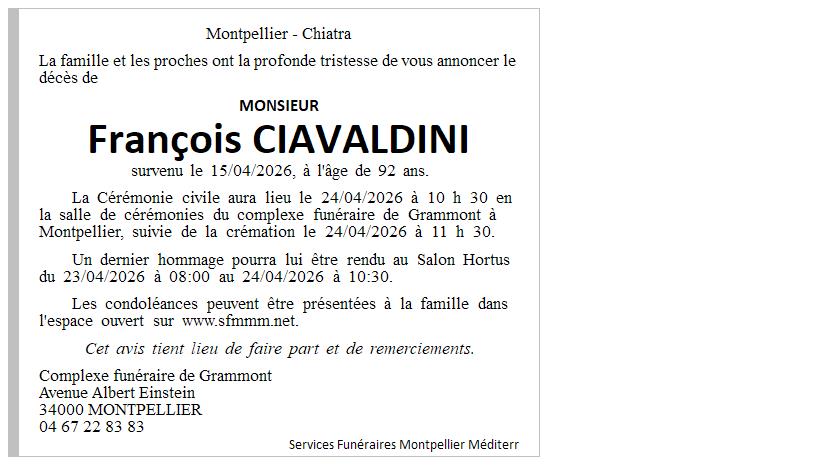 Complexe funéraire de Grammont le vendredi 24 avril à 11 heures 30