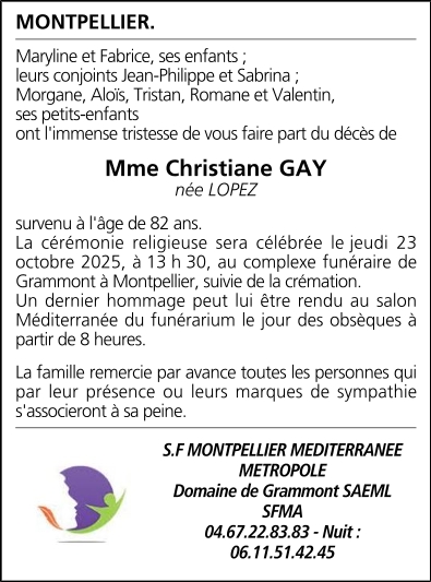 Madame Christiane GAY née LOPEZ