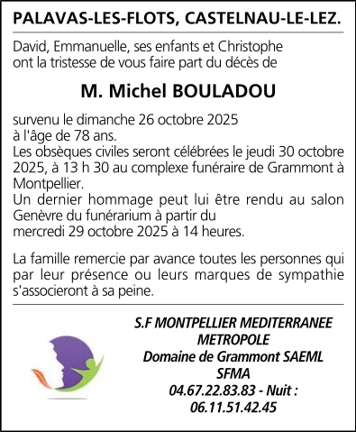Décédé à Montpellier (34000, France) le dimanche 26 octobre 2025 à l'âge de 78 ans