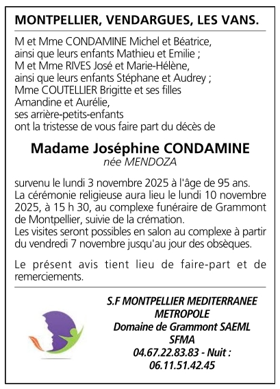 Décédée à Montpellier (34000, France) le lundi 3 novembre 2025 à l'âge de 95 ans
