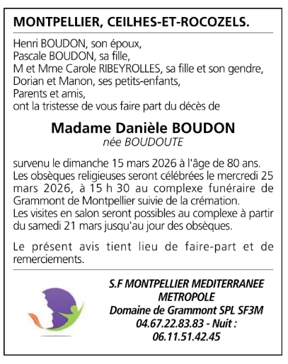 Madame Danièle BOUDON née BOUDOUTE