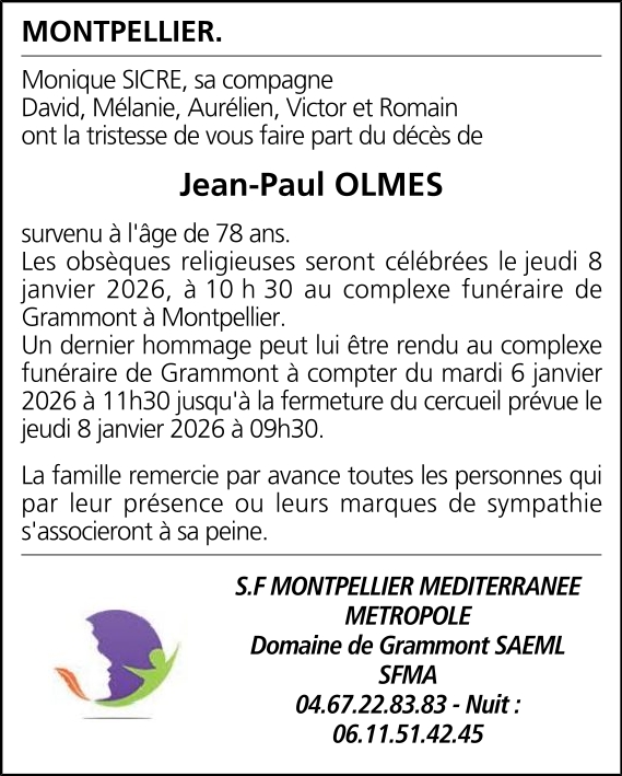 Décédé à Montpellier (34000, France) le vendredi 2 janvier 2026 à l'âge de 78 ans