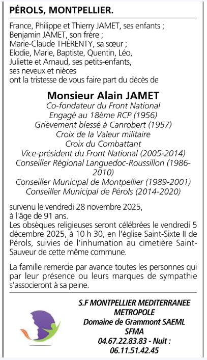 Décédé à Castelnau-le-Lez (34170, France) le vendredi 28 novembre 2025 à l'âge de 91 ans