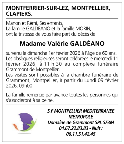 Décédée à Nîmes (30000, France) le dimanche 1 février 2026 à l'âge de 60 ans
