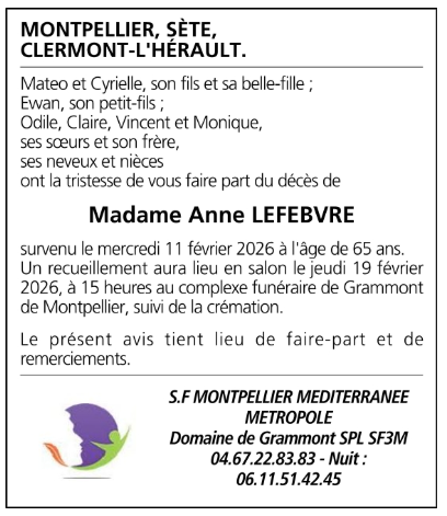 Décédée à Montpellier (34000, France) le mercredi 11 février 2026 à l'âge de 65 ans