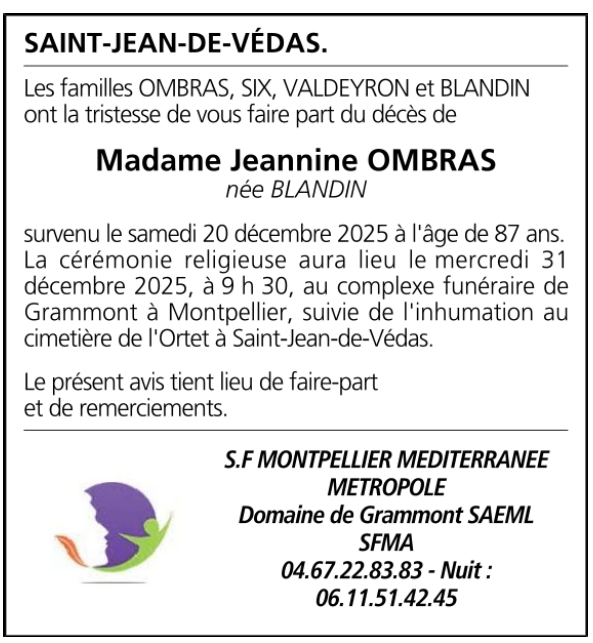 Décédée à Sète (34200, France) le samedi 20 décembre 2025 à l'âge de 87 ans